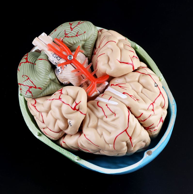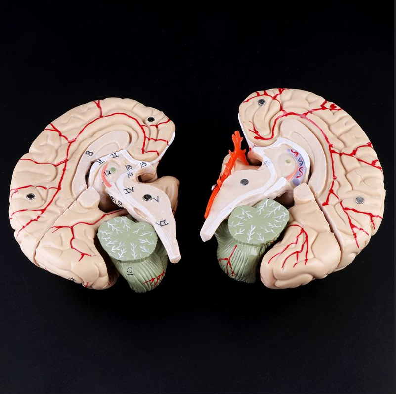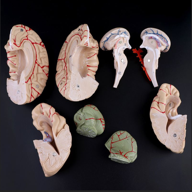Ce modèle de cerveau de taille réelle très détaillé peut être divisé en 8 parties pour montrer la section sagittale, l’hémisphère cérébral, le cervelet et le tronc cérébral, etc. Il montre l’hémisphère cérébral, le diencephalon, le cervelet, le cerveau central, les pons, la medule et les nerfs crâniens, etc.