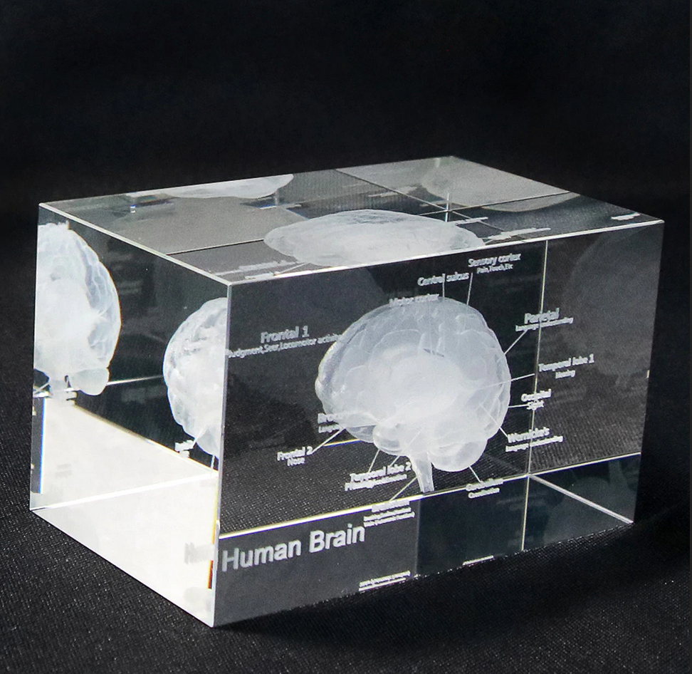 Cube en verre de cristal gravé au Laser 3D, modèle d’anatomie humaine, poids en papier, esprit, névrologie, pensée, Science médicale, cadeau