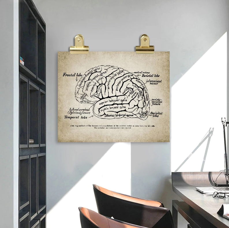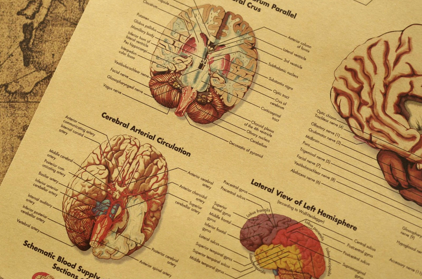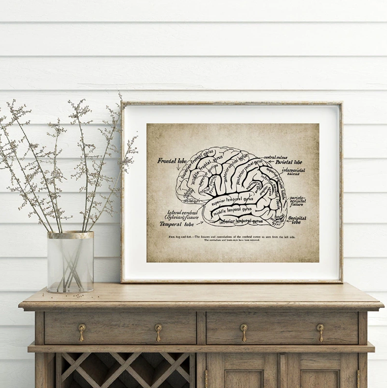 Affiche Vintage d’anatomie du cerveau humain, impression nordique, peinture sur toile d’art mural de bureau de médecin, décoration, cadeaux de médecine
